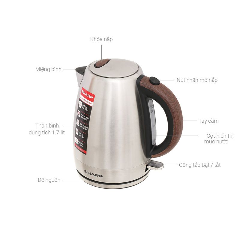 Bình đun siêu tốc Sharp EKJ-17EVSD-WD 1.7 lít là thiết bị đun sôi nước nhanh thiết kế tiện nghi cho gia đình, văn phòng, phòng trọ hoặc bất cứ không gian nào cần nước nóng mỗi ngày. Với dung tích 1.7 lít lớn hơn bình thường, bạn có thể pha trà, cà phê, sữa, mì gói hay chuẩn bị nước nóng cho nhiều người chỉ trong vài phút.