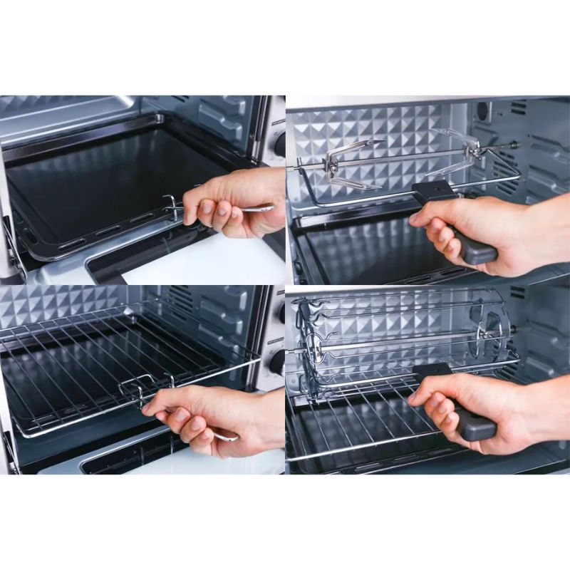 - Dung tích 32 lít: Phù hợp cho gia đình 3 – 5 người, thích hợp để chế biến nhiều món ăn từ nướng bánh, quay gà, nướng rau củ.