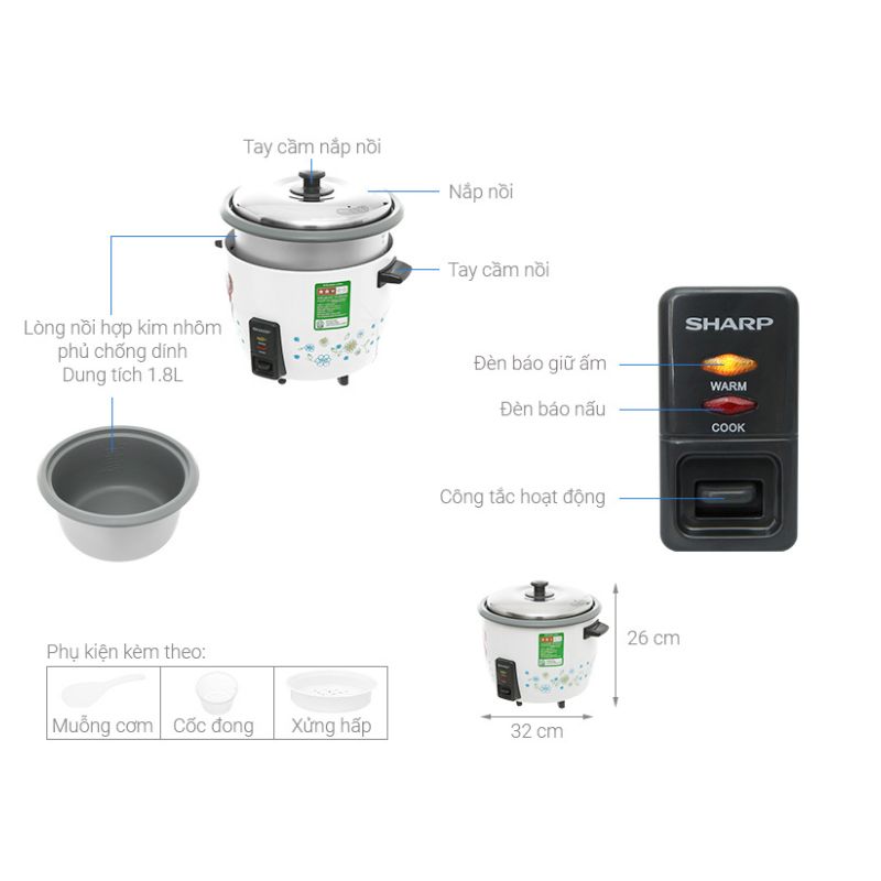 Nồi cơm nắp rời Sharp KSH-218SNV-SF 1.8 lít